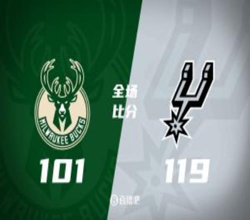 马刺大胜送雄鹿3连败文班22+10卡斯尔19+10字母哥21+5